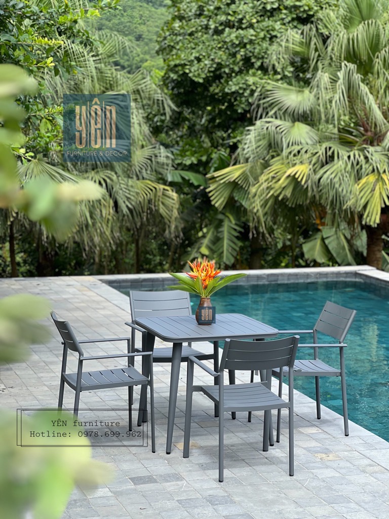 Yên furniture xin giới thiệu đến các bạn bộ bàn ghế sân vườn GN01-04BV800 mang thiên hướng mẫu bàn ghế hiện đại cho sân vườn của bạn. Với tông màu tối giúp cho bộ bàn ghế toát lên vẻ đẹp mạnh mẽ, cứng cáp.