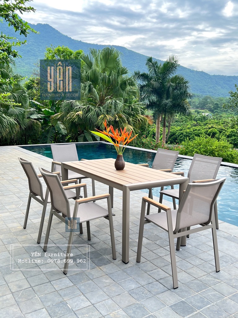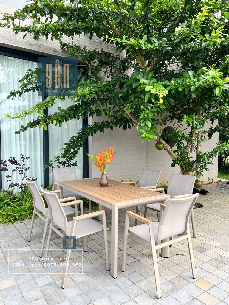 - Số lượng: 1 bàn, 6 ghế