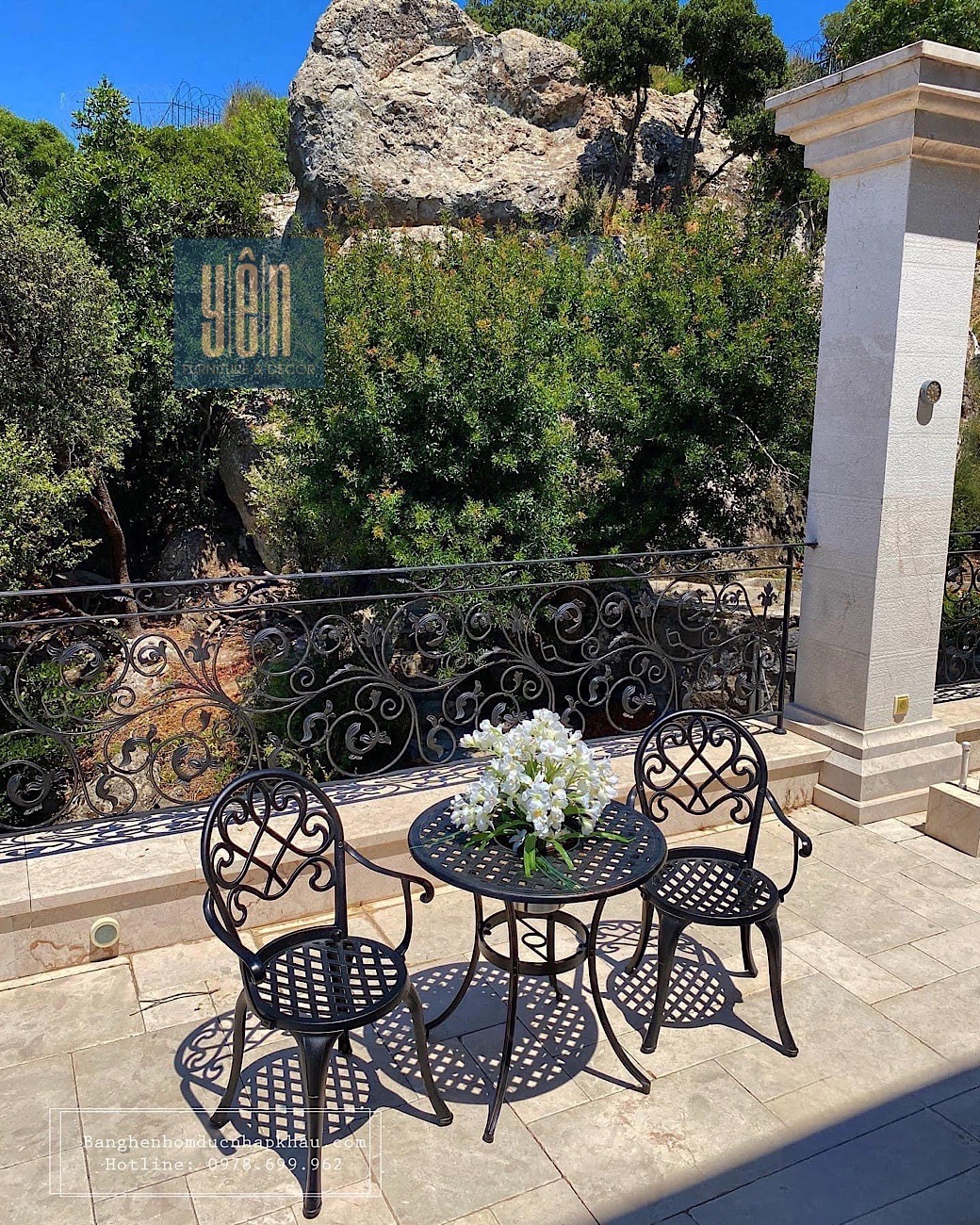 Bộ bàn tròn nhôm đúc 2 ghế mang phong cách Bistro tân cổ điển. Là lựa chon lý tưởng cho các không gian như: ban công, sân vườn, quán cafe, hiên nhà hoặc góc thư giãn trong nhà