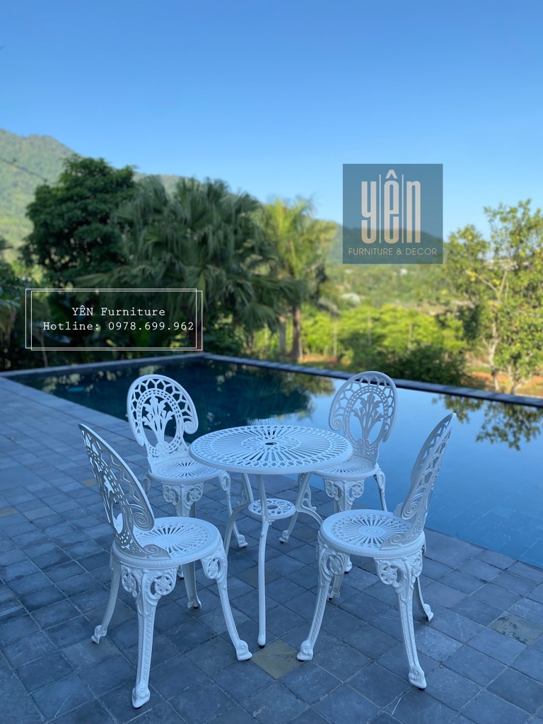 Bàn ghế nhôm đúc nhỏ ngoài trời là một sự lựa chọn hoàn hảo để trang trí không gian ngoại thất, tạo điểm nhấn và tạo nên không gian thoải mái, tiện nghi cho người sử dụng. Sản phẩm này không chỉ mang lại giá trị thẩm mỹ mà còn đem lại sự tiện lợi và thoải mái cho người sử dụng.