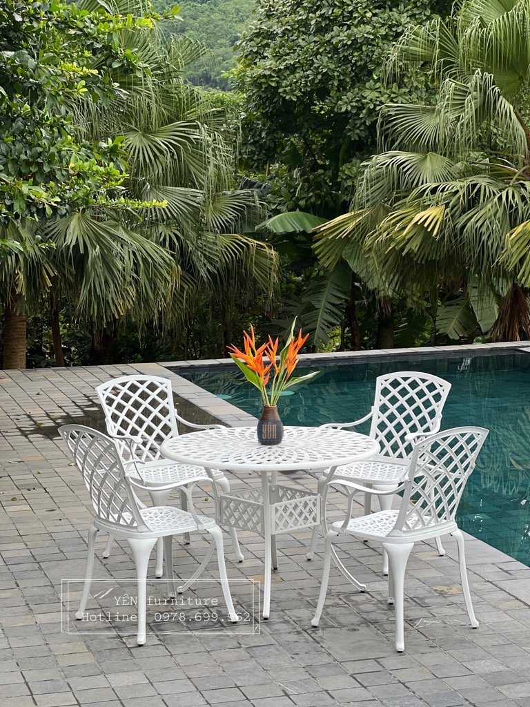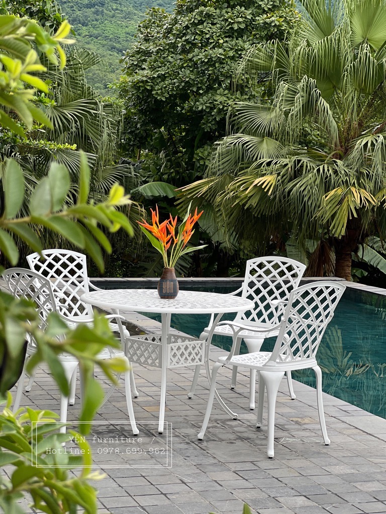 Bàn ghế nhôm đúc, Bàn ghế sân vườn là một dòng ngoại thất không thể thiếu trong không gian sân vườn của nhiều gia đình. Không chỉ mang tính thẩm mĩ tạo lên vẻ đẹp sang trọng, tao nhã cho khu vườn. Nó còn đáp ứng nhu cầu giả trí, thư giãn cho các thành viên trong gia đình.