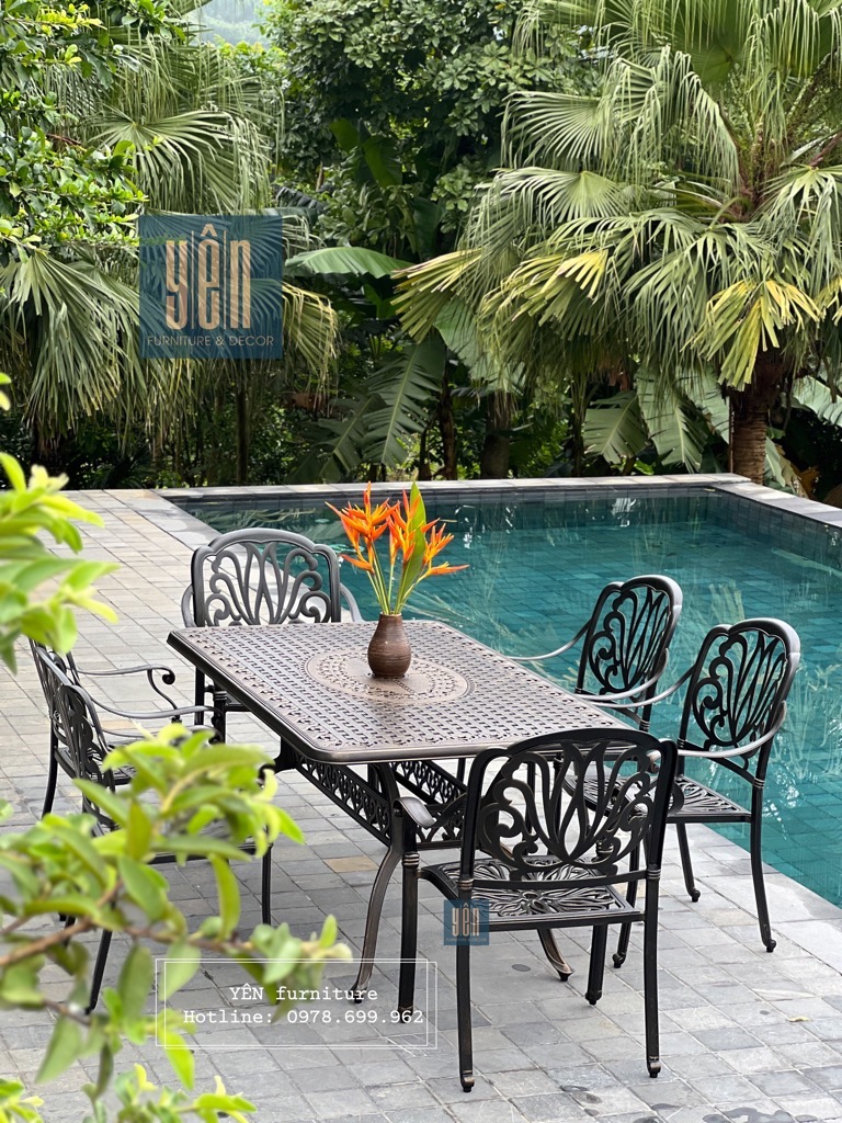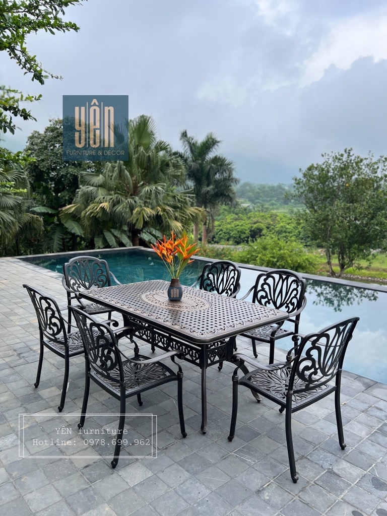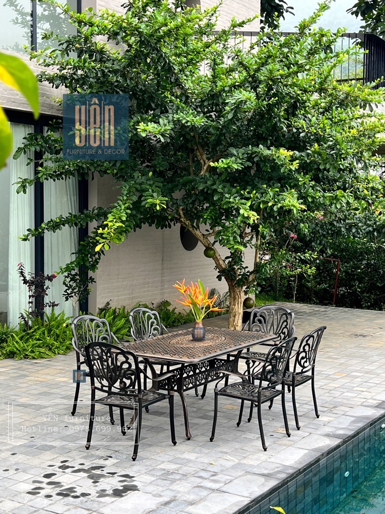 Yên furniture xin giới thiệu đến các bạn bộ sản phầm gồm 6 ghế và 1 bàn dùng cho sân vườn, không gian ngoài trời để bạn cùng với gia đình, bạn bè có những bữa tiệc ngoài trời ấm cúng.