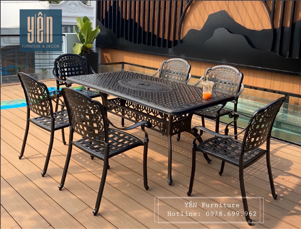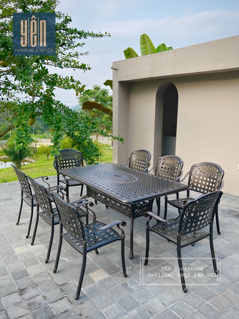 Bàn ghế nhôm đúc ngày càng trờ thành một sự lựa chọn không thể thiếu dành cho không gian sân vườn ngoài trời. Sản phẩm này có tuổi thọ sử dụng lâu dài, có thể chịu được những tác động của thời tiết. Sản phẩm được thiết kế theo nhiều phong cách khác nhau từ cổ điển đến hiện đại. Bộ bàn ghế được chú trọng trong từng chi tiết trang trí, giúp mang tới giá trị thẩm mỹ cao, mang tới nét đẹp độc đáo cho khu sân vườn của bạn