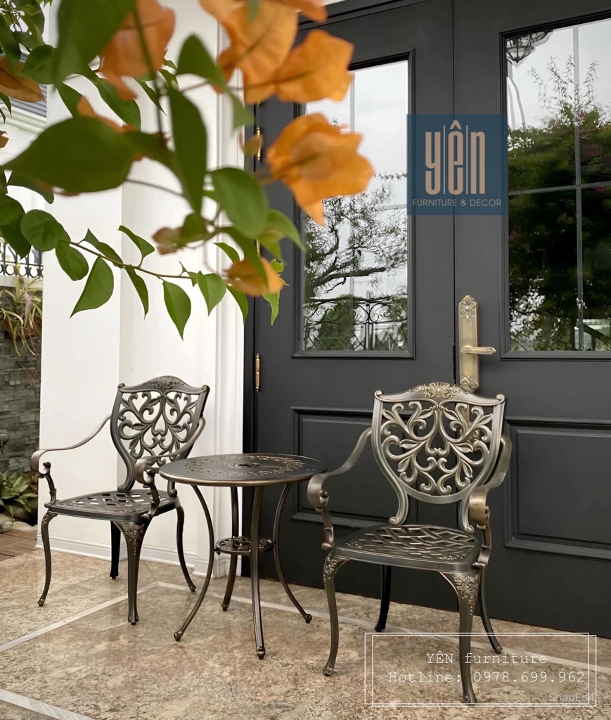 Nhôm đúc đã và đang trở thành xu thế, một trào lưu mới trong trang trí nội thất. Được gia công bằng tay với những đường uốn hoa văn mỹ thuật chuyên nghiệp độc đáo, màu sắc kiểu mẫu đa dạng nhưng không kém phần sang trọng cho ngôi nhà của bạn, thỏa thích cho bạn lựa chọn, cả về Nội thất và Ngoại thất. Yên funiture xin giới thiệu đến các bạn bộ bàn ghế nhôm đúc ND16N-02D650