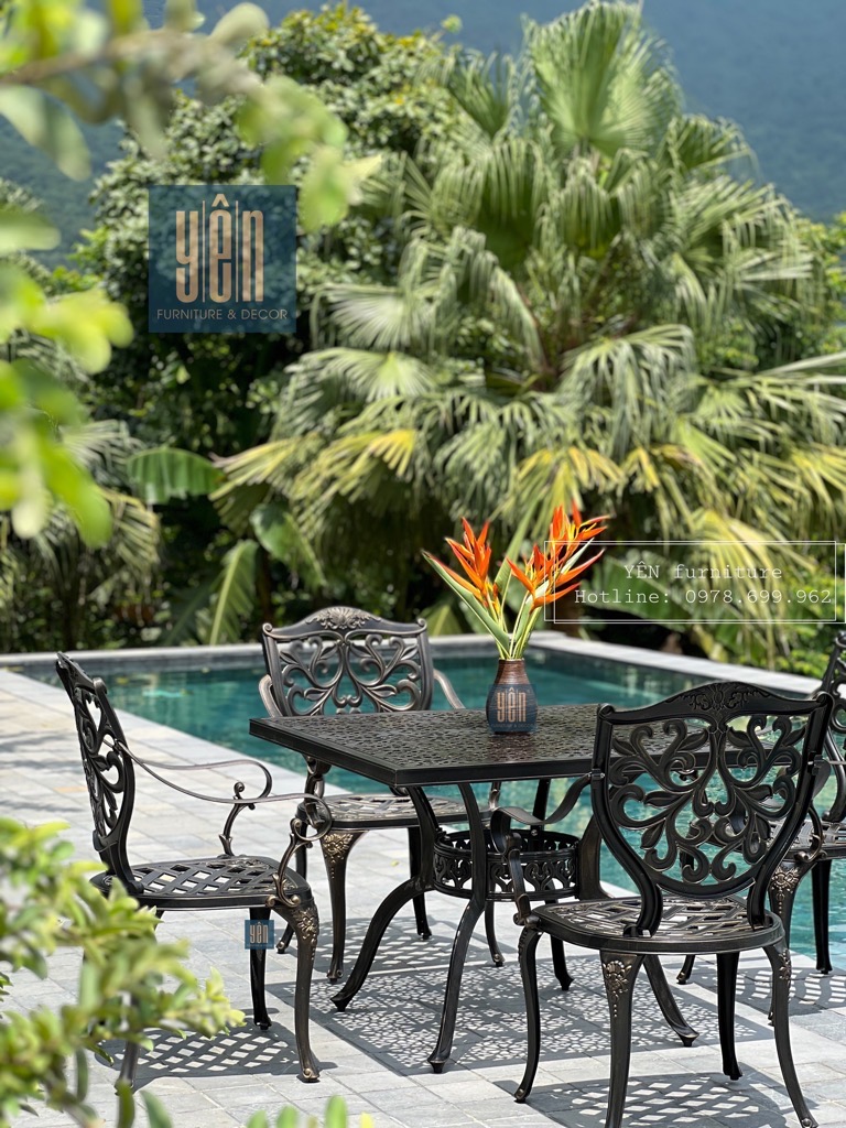 Nhôm đúc đã và đang trở thành xu thế, một trào lưu mới trong trang trí nội thất. Được gia công bằng tay với những đường uốn hoa văn mỹ thuật chuyên nghiệp độc đáo, màu sắc kiểu mẫu đa dạng nhưng không kém phần sang trọng cho ngôi nhà của bạn, thỏa thích cho bạn lựa chọn, cả về Nội thất và Ngoại thất. Yên funiture xin giới thiệu đến các bạn bộ bàn ghế nhôm đúc ND16N-04V1000