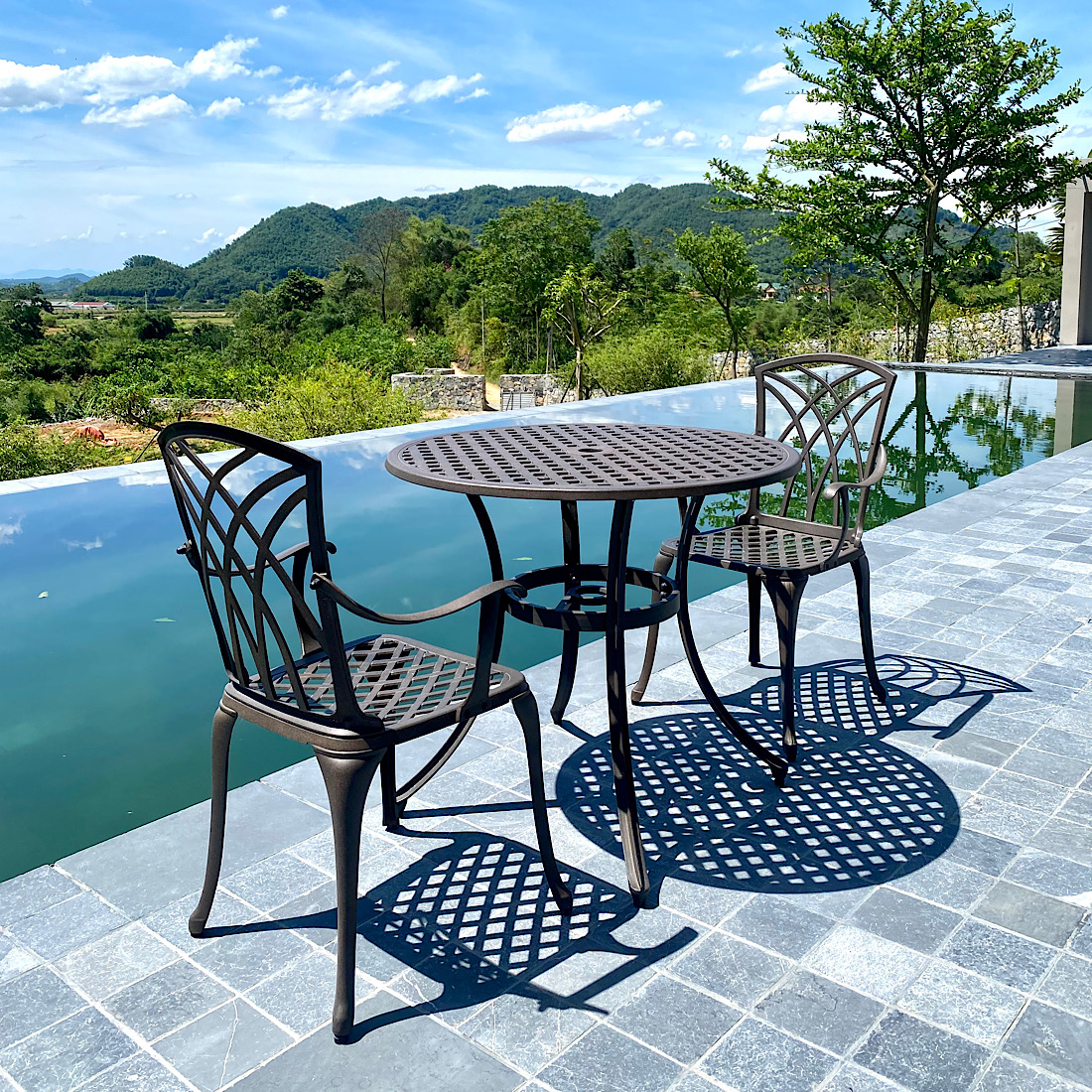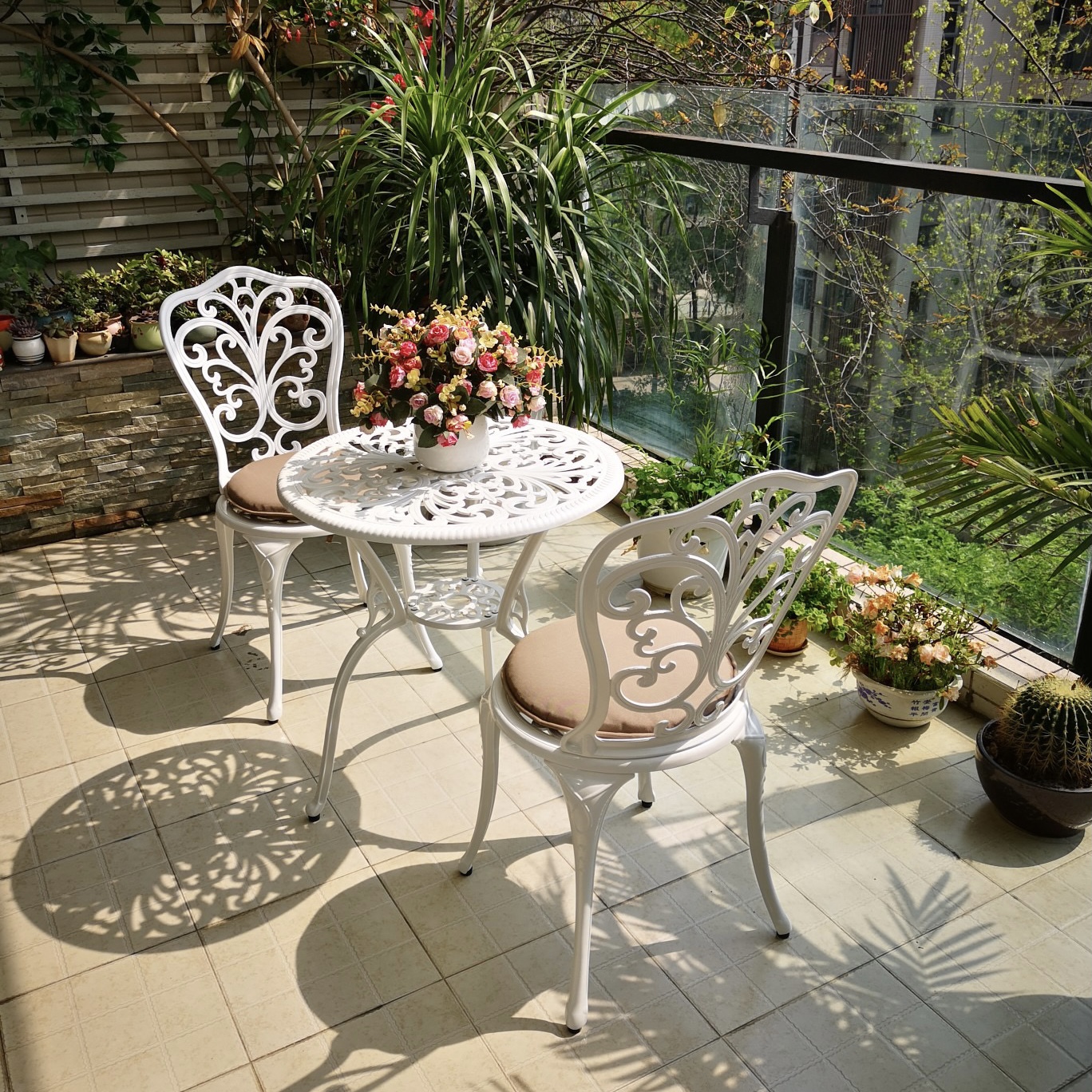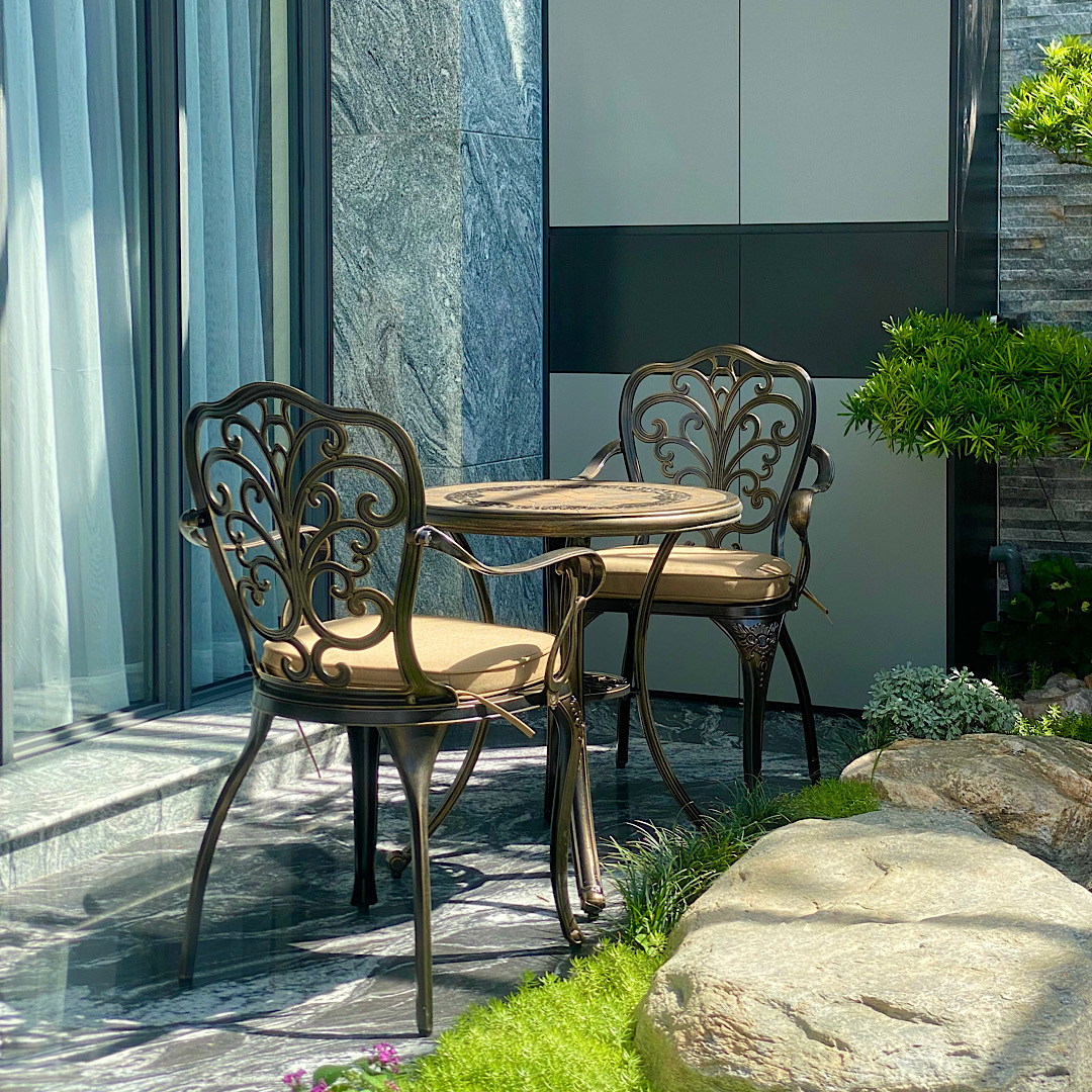 Một bộ bàn ghế nhôm đúc hay 1 chiếc ghế băng cũng đủ là điểm nhấn giúp cho cảnh quan không gian sân vườn, ban công, sân thượng thêm phần sang trọng, hiện đại hơn, bắt mắt hơn.