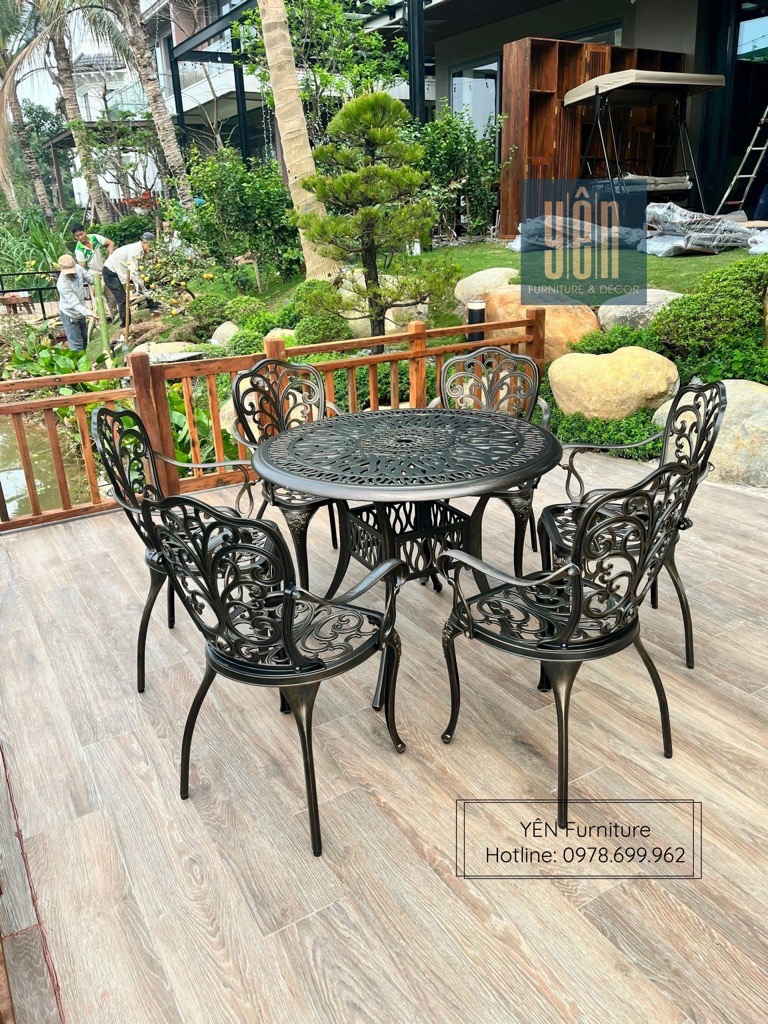 Yên furniture xin giới thiệu đến các bạn bộ sản phầm gồm 6 ghế và 1 bàn dùng cho sân vườn, không gian ngoài trời để bạn cùng với gia đình, bạn bè có những bữa tiệc ngoài trời ấm cúng.