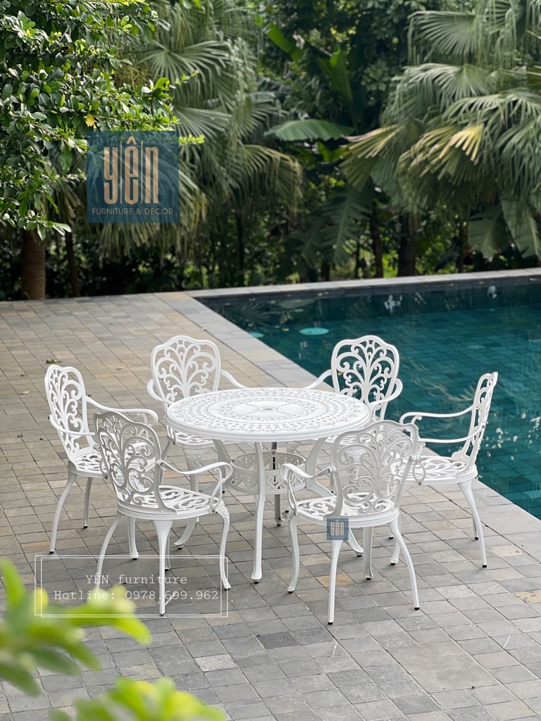 Yên furniture xin giới thiệu đến các bạn bộ sản phầm gồm 6 ghế và 1 bàn dùng cho sân vườn, không gian ngoài trời để bạn cùng với gia đình, bạn bè có những bữa tiệc ngoài trời ấm cúng.