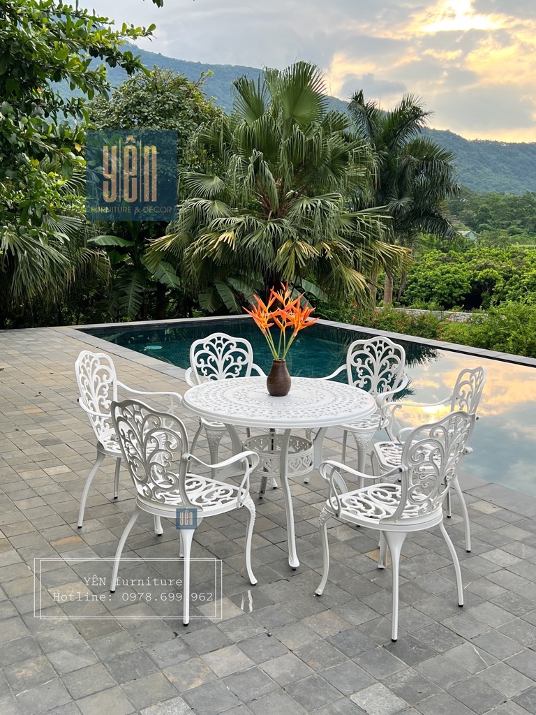 Khi dạo chơi ngắm cảnh, sẽ càng tuyệt vời hơn trong khuôn viên nhà bạn được bạn trang trí thêm một bộ bàn ghế sân vườn. Một bộ bàn ghế nhôm đúc đặt tại không gian này giúp các bạn có thể nghỉ ngơi, ngồi đọc sách, thưởng thức cafe hoặc trò truyện giữa không gian thiên nhiên đẹp và thơ mộng của nhà vườn.
