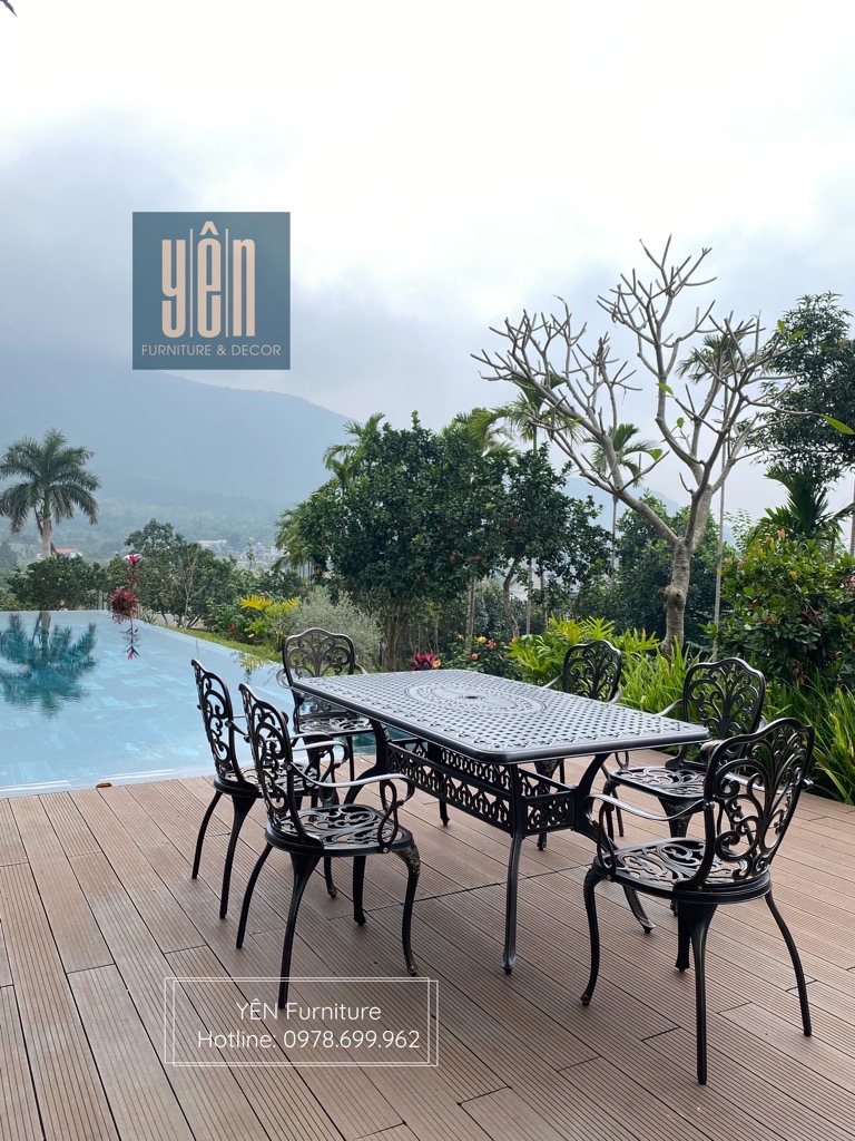 Yên furniture xin giới thiệu đến các bạn bộ sản phầm gồm 6 ghế và 1 bàn dùng cho sân vườn, không gian ngoài trời để bạn cùng với gia đình, bạn bè có những bữa tiệc ngoài trời ấm cúng.