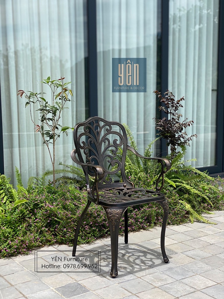 Bộ bàn ghế sân vườn ND02N-06BCN1700 là một trong những mẫu bản ghế được ưa chuộng nhất bởi lớp sơn nâu tạo nên sự sang trọng và thiết kế cổ điển. Được chế tạo bằng nhôm đúc nguyên khối khi sử dụng bộ sản phẩm này các bạn sẽ không cần phải bảo dưỡng, sản phẩm khó bị bảo mòn và hoen rỉ rất phù hợp cho ngoài trời, sân vườn nhà bạn.