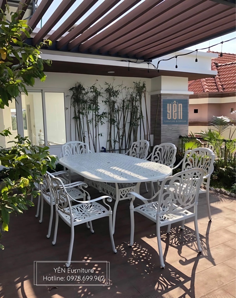 Ngày nay, chúng ta đang có xu hướng mở rộng không gian sống, gần gũi và thân thiện hơn với thiên nhiên nên những nhà thiết kế ngoại thất cho không gian ngoài trời luôn luôn thay đổi, sáng tạo để thiết kế ra những sản phẩm đẹp, chất lượng để giúp sân vườn, không gian ngoài trời sẽ trở lên đẹp đẽ hơn. Không gian sân vườn, ngoài trời ấn tượng hơn nếu được bài trí một cách tinh tế và độc đáo hơn với bộ bàn ghế nhôm đúc ngoài trời.