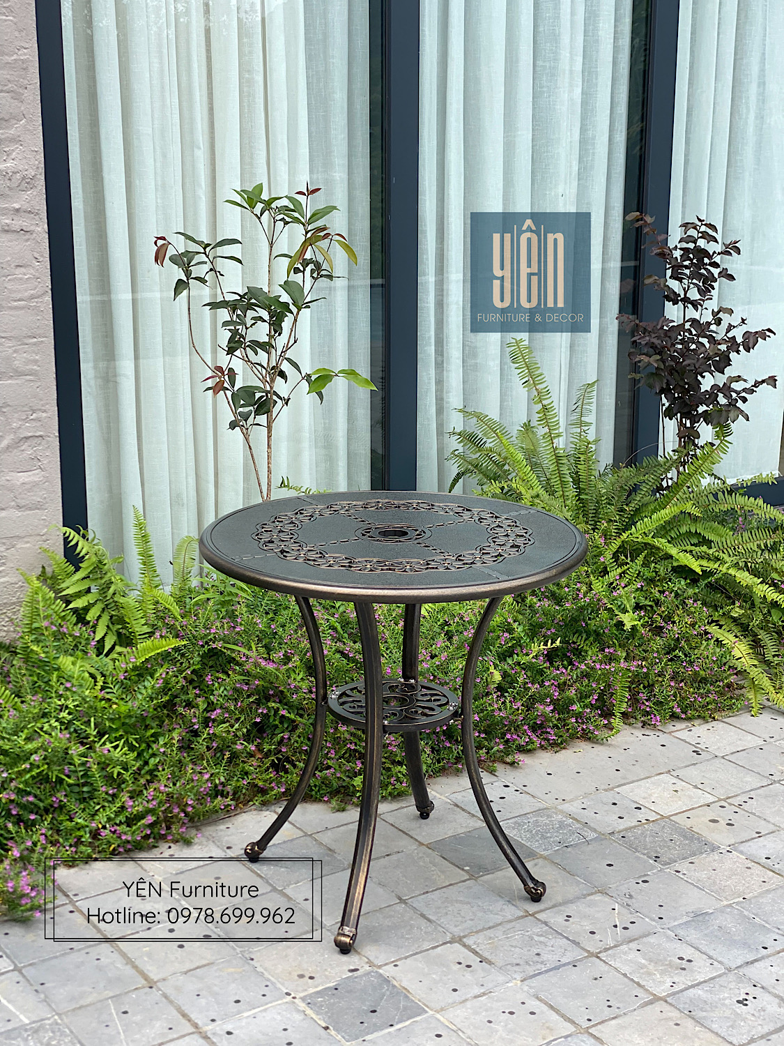 Được chế tác từ nguyên liệu hợp kim nhôm bàn ghế nhôm đúc ND10N-02D65 là một sự lựa chọn rất bền bỉ cho ban công, sân vườn nhà bạn. Với những hoạ tiết tinh tế, hài hoà mang hơi hướng quý tộc, nó mang đến một vẻ đẹp khó cưỡng cho bạn, người thân và bạn bè của bạn. Màu glossy bronze làm nổi bật lên sự quý phái cho khu vườn của bạn.