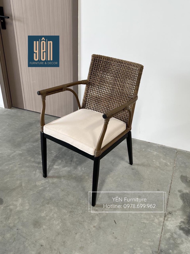 • Chất liệu: Khung nhôm sơn tĩnh điện, mặt ngồi và lưng tựa đan sợi nhựa giả mây